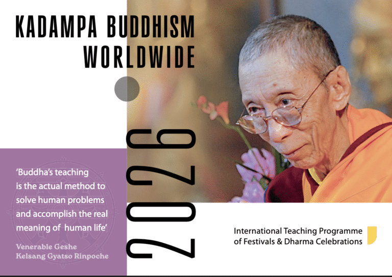 El fundador del budismo kadampa moderno es venerable Gueshela Kelsang Gyatso Rimpoché, conocido cariñosamente como venerable Gueshela, maestro de meditación y maestro de renombre mundial. Inspiró a miles de personas de todo el mundo a aplicar las enseñanzas puras de Buda a sus vidas modernas para resolver sus problemas personales y descubrir una paz interior y una felicidad profundas y duraderas. En la actualidad, el legado de su obra llega a personas de todas las nacionalidades y culturas.