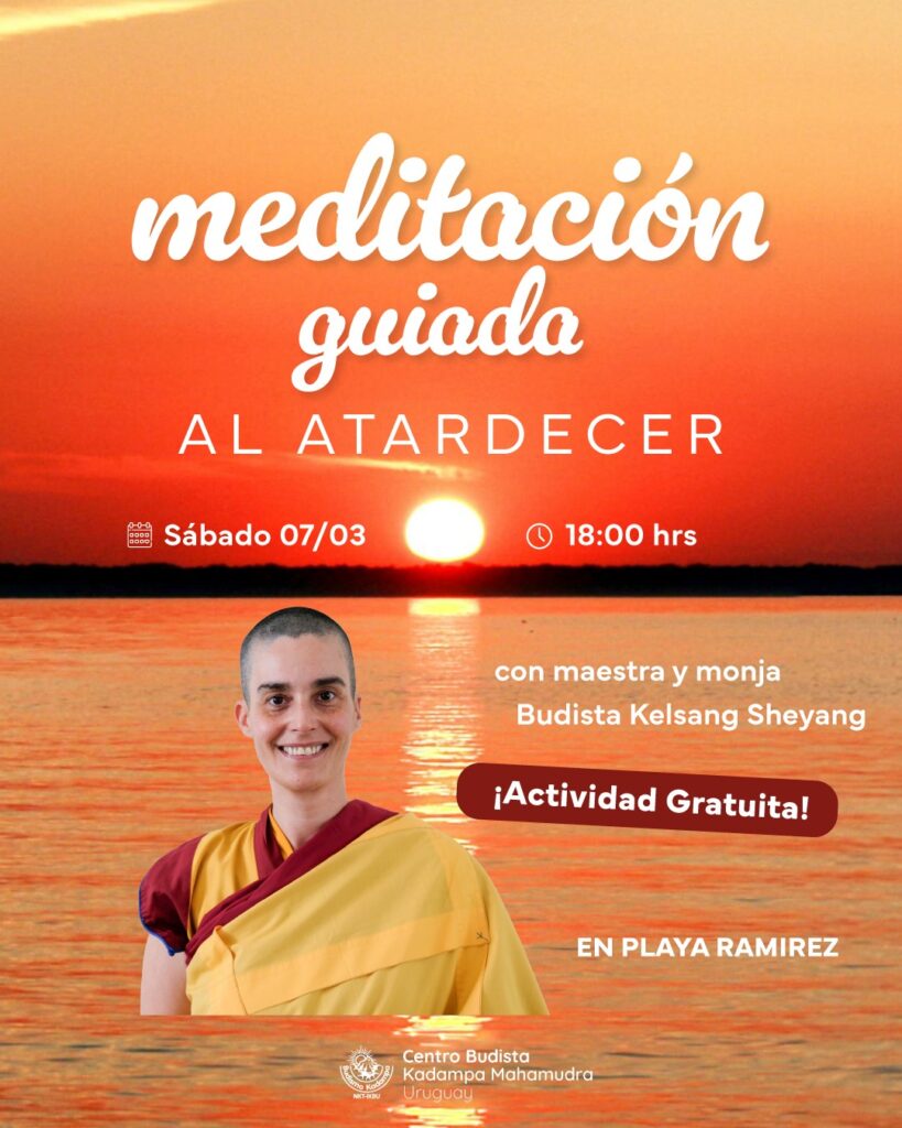 La meditación al atardecer te invita a soltar el día, conectar con tu paz interior, dejar ir las tensiones y cerrar el día bajo los hermosos colores del atardecer visto desde la rambla de Montevideo.